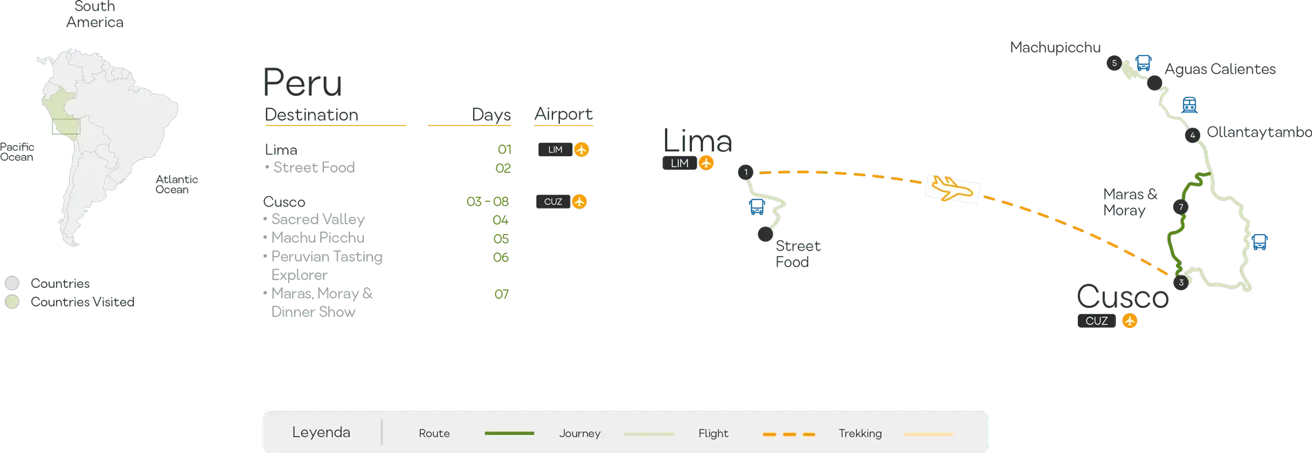 Discover the essence of Peru through an immersive eight-day culinary and cultural journey. Begin in Lima, exploring vibrant street food and historic flavors, then travel to Cusco to uncover the Sacred Valley and the legendary Machu Picchu. Savor traditional dishes, learn about Peruvian chocolate and pisco, visit ancient sites, and delight in a show dinner, blending heritage with authentic tastes from the Inca heartland.