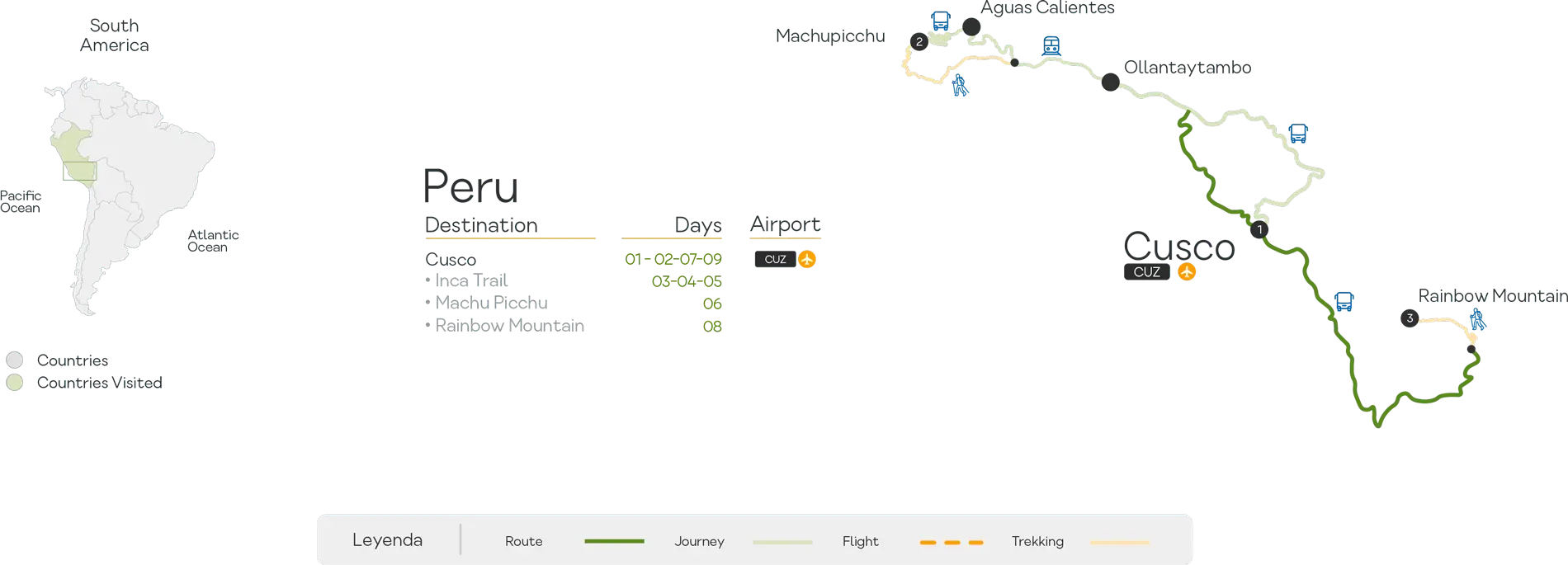 • Bus tickets for ascent and descent to/from Machu Picchu