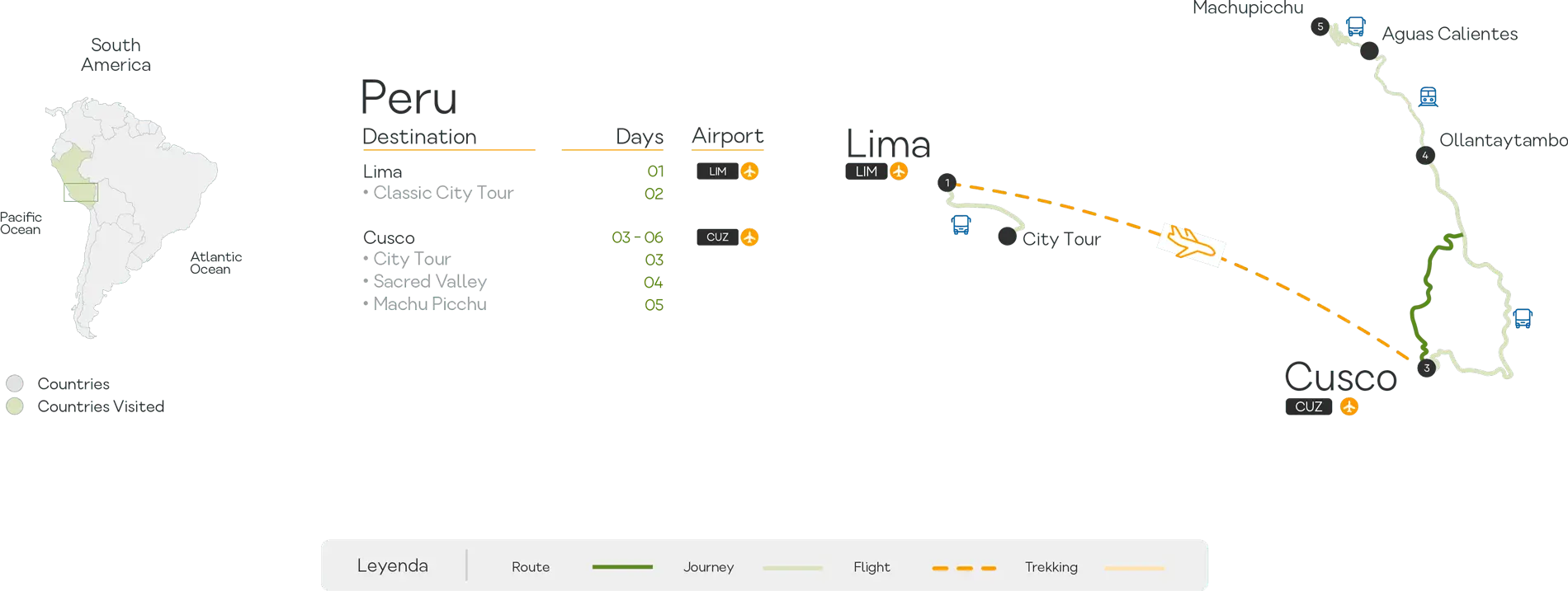 A concise yet profound journey into Peru’s heart, this itinerary blends Lima’s colonial charm with Cusco’s Inca heritage and the serene landscapes of the Sacred Valley. The experience reaches its pinnacle at Machu Picchu, where stone terraces and mist-clad peaks embody the enduring spirit of the Andes.